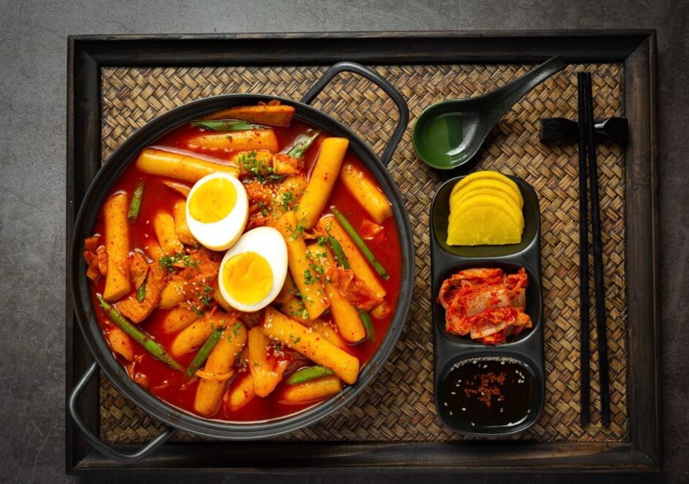 Tteokbokki adalah salah satu jajanan street food paling populer di Korea dan hampir selalu muncul di K-Drama. Tteokbokki adalah kue beras yang dimasak dengan saus cabai pedas.