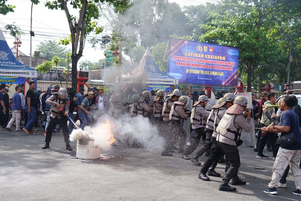 Selain prosedur taktis, para personel juga menunjukkan kemahiran bela diri dan koordinasi penggunaan sarana prasarana lapangan. Melalui latihan intensif ini, diharapkan sinergitas antarinstansi semakin solid demi menjamin stabilitas keamanan di wilayah Kabupaten Sukoharjo.