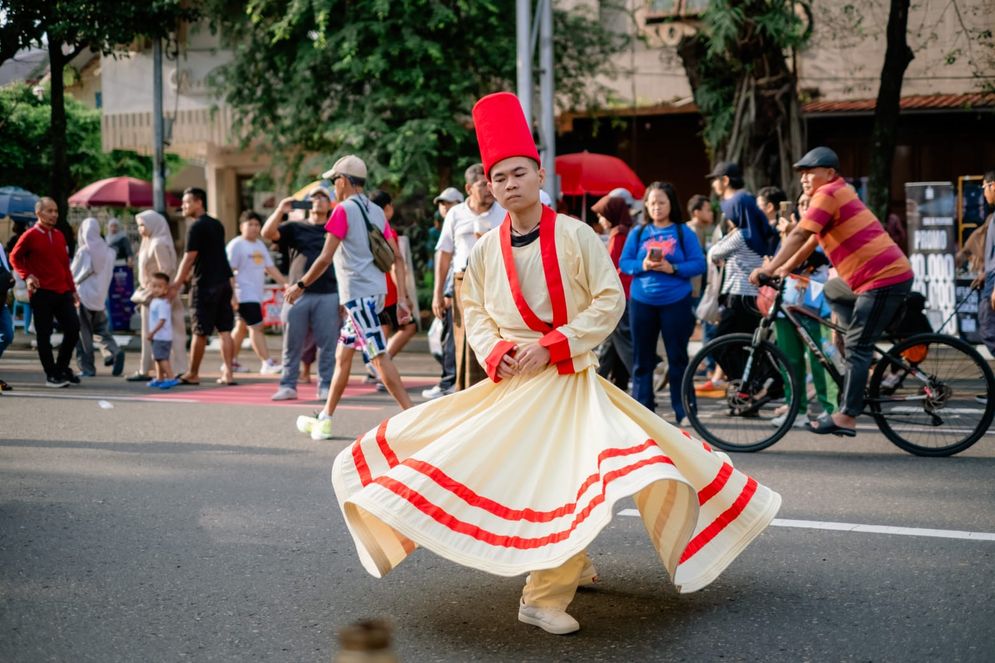 Daya tarik utama dalam kegiatan ini adalah penampilan Tari Sufi yang khidmat dan estetik, memberikan nuansa spiritual di tengah keriuhan olahraga pagi. Tak hanya hiburan visual, manajemen hotel juga membagikan ratusan cup teh tarik dan paket takjil secara gratis kepada masyarakat sebagai bentuk kepedulian.