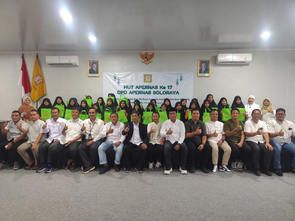 Ketua DPD APERNAS Solo Raya dan Salatiga, Budiyono, mengungkapkan bahwa kegiatan berbagi ini telah menjadi tradisi organisasi selama tiga tahun terakhir. Sebanyak 60 anak yatim dari Yayasan Aitam Kartasura hadir untuk menerima bingkisan dan santunan uang tunai.