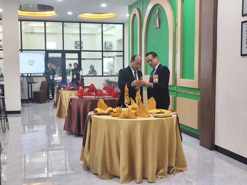 Tuan rumah dari Politeknik Indonusa, Wahyu Tri Hastiningsih, S.Pd., M.M., menyambut baik kolaborasi ini. Menurutnya, fasilitas kampus sangat mendukung untuk menguji standar hospitality yang dibutuhkan industri saat ini.