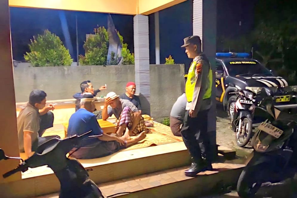 Kegiatan yang berlangsung pada Selasa (21/4/2026) malam tersebut dipimpin oleh **Bhabinkamtibmas Aipda Sarwoko** dan **Brigpol Edi Kurniawan, S.H.** Petugas turun langsung menemui warga yang sedang melaksanakan ronda untuk memberikan motivasi serta arahan terkait prosedur keamanan lingkungan.