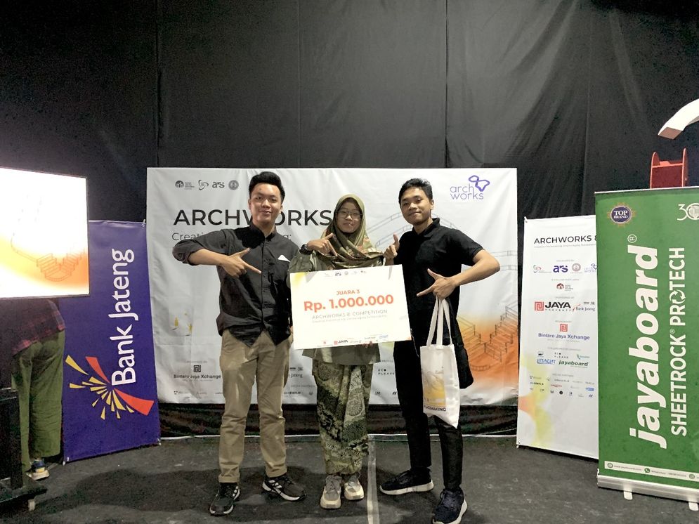 SUKHARJO (Soloaja.co) – Prestasi gemilang diraih Tim mahasiswa Program studi (Prodi) Arsitektur, Fakultas Teknik (FT) Universitas Muhammadiyah Surakarta (UMS). Mereka meraih Juara 3 di event Archworks 8 Competition yang diselenggarakan oleh Universitas Pembangunan Jaya Bintaro, dengan tema Access' and Linkages, Encouraging Sustainability.