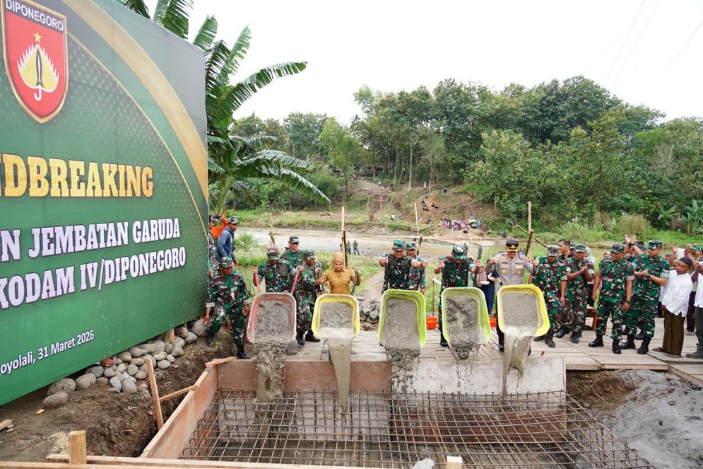 BOYOLALI (Soloaja.co) – Kabar gembira bagi warga Desa Bolo, Kecamatan Wonosegoro. Pangdam IV/Diponegoro, Mayjen TNI Achiruddin, secara resmi melaksanakan peletakan batu pertama pembangunan jembatan gantung yang menghubungkan Desa Bolo dengan Dusun Pingkuk pada Selasa (31/3/2026).