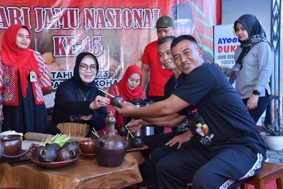 Bupati Sukoharjo, Etik Suryani saat ditemui dalam garis finish di Embung Gunung Pegat, Desa Karangasem, Bulu, Sukoharjo mengatakan peringatan Hari Jamu merupakan salah satu upaya untuk melestarikan budaya leluhur.