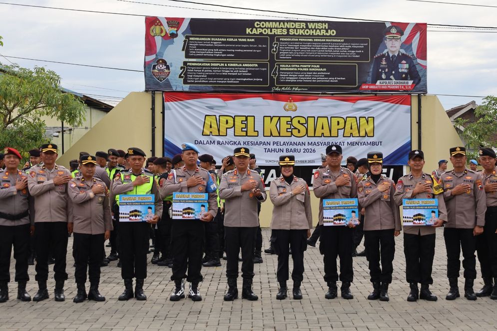 SUKOHARJO (Soloaja.co) – Kapolres Sukoharjo, AKBP Anggaito Hadi Prabowo, S.H., S.I.K., memimpin apel pagi Commander Wish di Lapangan Presisi Polres Sukoharjo, Senin (5/1/2026).