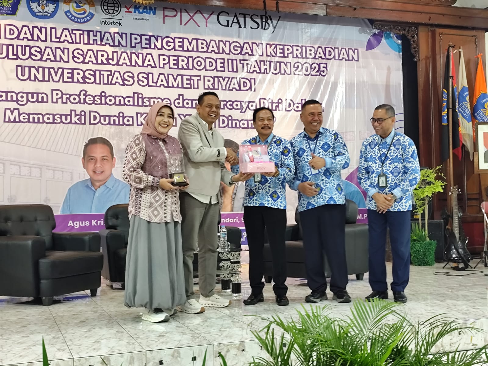 SOLO (Soloaja.co) - Universitas Slamet Riyadi (UNISRI) Surakarta menggelar Pendidikan dan Pelatihan Pengembangan Kepribadian dengan tema "Membangun Profesionalisme dan Percaya Diri dalam Memasuki Dunia Kerja yang Dinamis" di Auditorium UNISRI, Sabtu (25/10/2025).